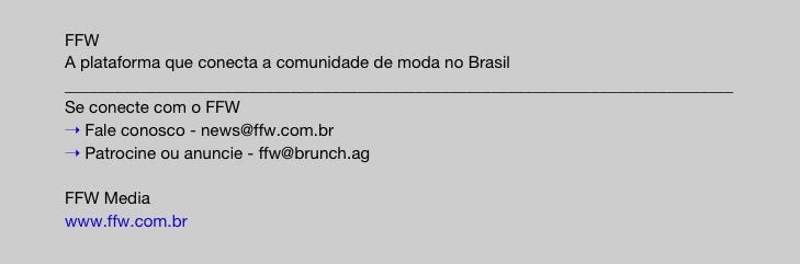 Coloque sua marca aqui nessa newsletter e seja visto por muitos interessados. Escreva para contato@ffw.com.br.